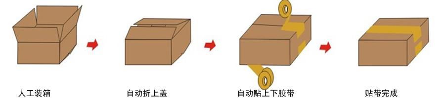 ◆ 本系列是以單機(jī)機(jī)型上下“一”字型貼膠帶,多規(guī)格化全自動(dòng)封箱包裝作業(yè)